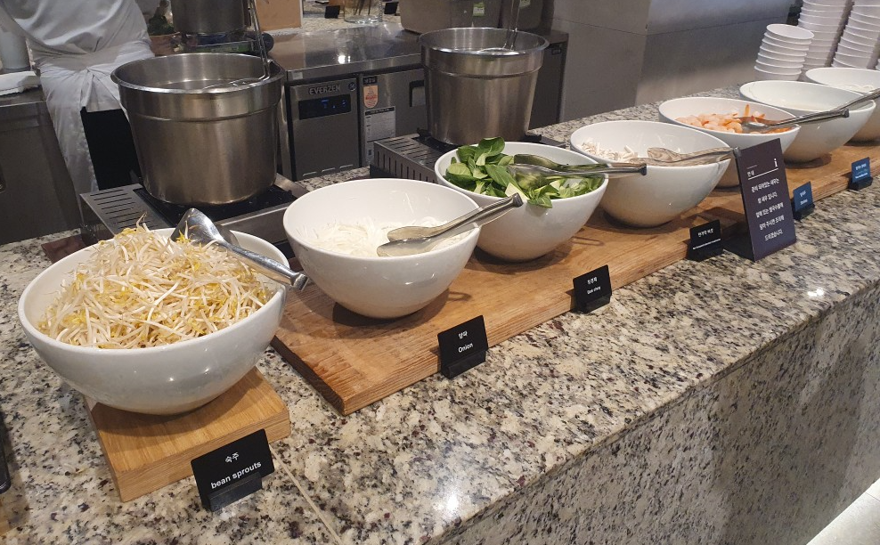 고성 소노펠리체 델피노의 조식 뷔페 셰프스키친에서 가장 좋았던 점은 즉석에서 만들어주시는 쌀국수와 계란 후라이였어요.