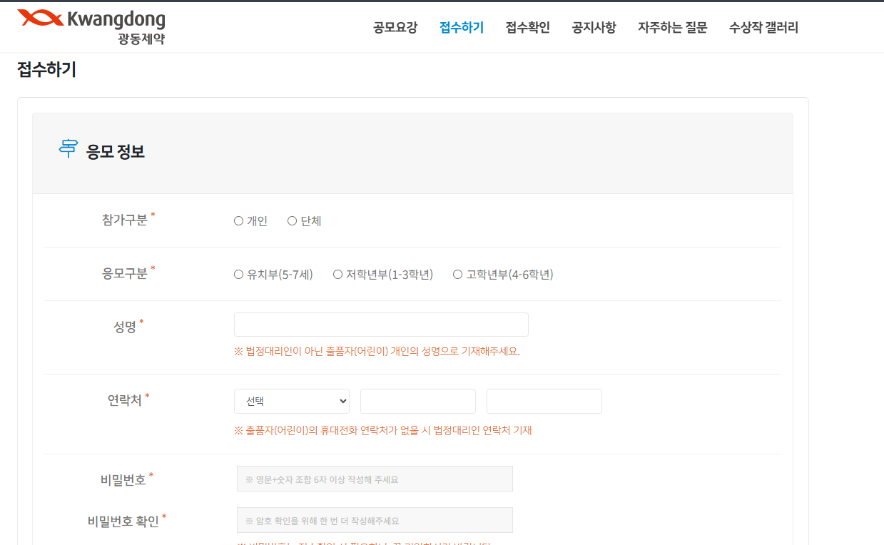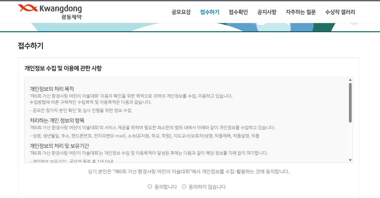 미술대회 홈페이지를 통한 온라인 접수